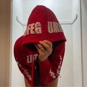 Stay cozy and stylish in this red Lifeguard hoodie featuring: