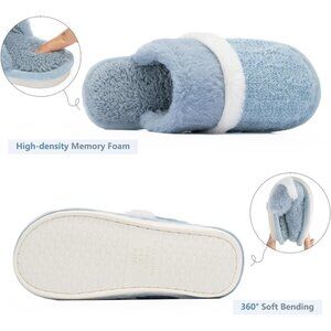 Women's Light Blue Cozy Comfy Memory Foam Slippers Slip-On Indoor House Shoes