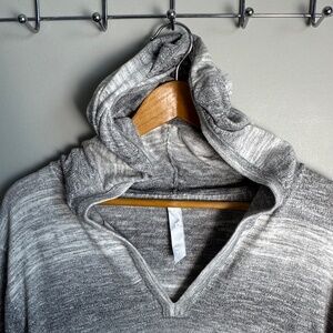 Womens Lightweight Pullover Knit V-Neck Hoodie Marled Gray Size XL Grunge School