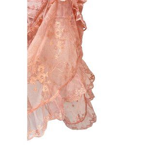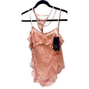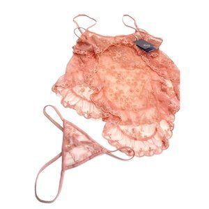 Beautiful Women's Lingerie 2pc Matching Set Peach Lace Thong and Camisole Floral Lounge Set