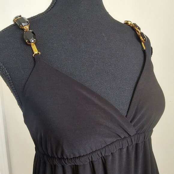 Elevate your style with this stunning Women's Little Black Bubble Dress by Guess in size XS. Perfect for weddings or parties, this sleeveless mini dress features a V-neckline with an adjustable Rhinestone accent for a touch of glamour. The pullover closure and solid black colour make it easy to slip on and stand out in any occasion. Hand wash only, this dress is made of a blend of polyester and spandex for a comfortable fit. Add this versatile piece to your wardrobe for a chic and trendy look this summer and spring. Proudly made in the United States.