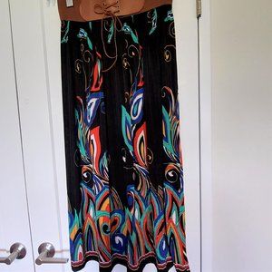 Women's Long Graphic Design Skirt w/Elastic Waistband - Black/Multi - Size 10