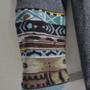 Very cute long grey shirt with nice patterned sleeves and half button style.