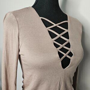 Women's Long Sleeve V-Neck Crisscross Fashion Top, Small, Taupe