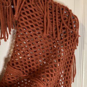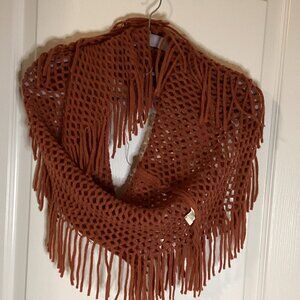 Women's Loop Knit Infinity Brown Scarf With Long Fringe Tassels Shoulder Wrap