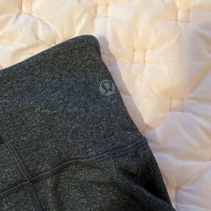 Women’s lululemon dark gray capri with peacock feather detail at bottom cuff