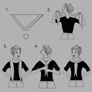A classic way to wear a ladies scarf. Suitable for a wide range of scarf sizes and fabrics. A timeless and elegant look for daytime and evening wear.
