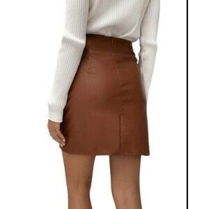 Women's M Brown Bodycon Mid Rise Faux Leather Short Wrap Ruched Skirt Tulip Hem