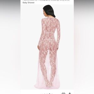 Pink Lace Maxi Dress perfect for Maternity, baby shower or photoshoot! Never been worn! Sz S — refer to size chart in photos.