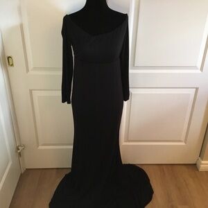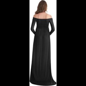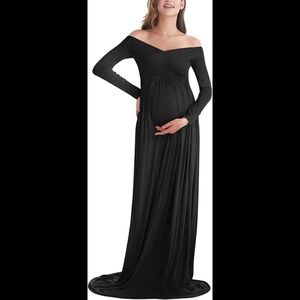 Brand new without tags women’s size M (size chart in photos) black maternity off the shoulder half circle gown maxi photoshoot dress. Off-shoulder long sleeves, cross-front v-neck/sweetheart neckline shows your beautiful lines of collarbones and shoulders. Enchanting half circle cut and high waist slim fitted gown with a train outlines your perfect shape & adorable baby bump. Pull on style that is soft and stretchy.