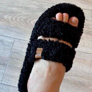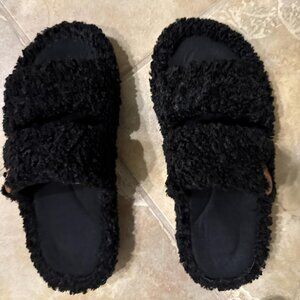 Women's Matt-Black Fuzzy Open-toe Slippers Soft Comfy Foam Indoor House Shoes