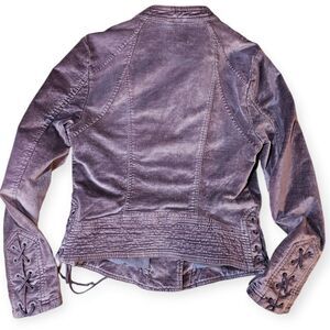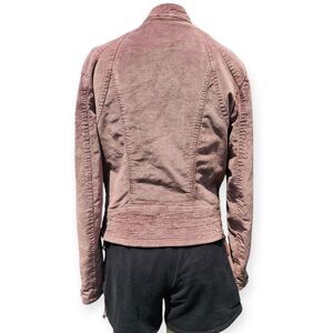Elevate your style with this chic mauve leather jacket. Perfect for any occasion, this jacket offers both comfort and elegance. this is a beautiful jacket in mint condition, it just ended up being a little too big for me.
