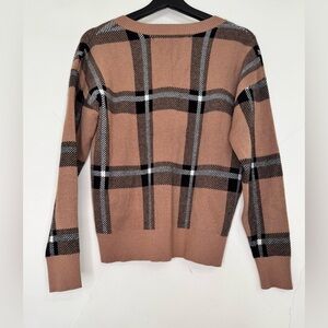 Women’s Max Studio Preppy V-Neck Ribbed Plaid Block Viscose Blend Sweater M