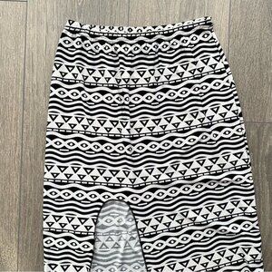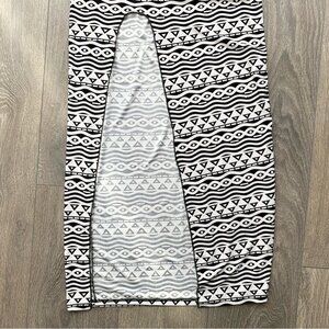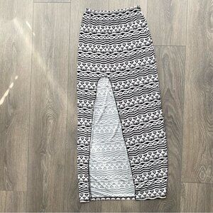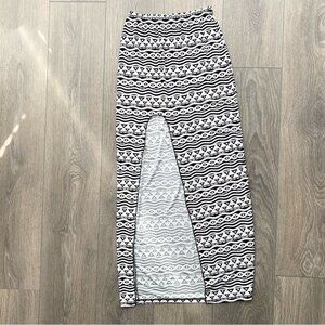 Geometric Aztec Pattern Black & White Side Slit Long Maxi Skirt
