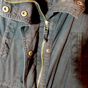 This vest is long fitting with a zipper/button front and tie strings.