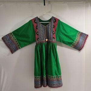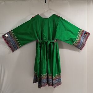 Women's Medium Green Long Sleeve Afghan Dress W/Pants & Scarf.
