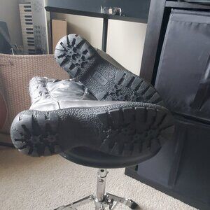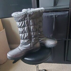 Women's Metallic Silver TOTES Bunny Quilted Puffer Snow Boots Size 8 M Like New