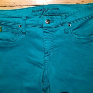 Rachel is our skinny jeans silhouette, fitted at the hip and ankle and is worn very close to the body creating a figure flattering fit for all body types. This lightweight jean is made of super soft material. Take your basic denim to the next level in these fun summer hues. Our bright turquoise tone will brighten up any summer outfit.