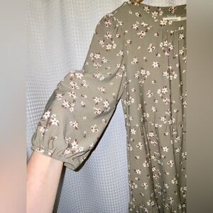 Women’s Monteau sage green floral 2/3 sleeves dress small