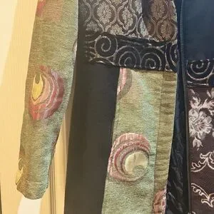 Elevate your style with this stunning multicolor patterned coat. Perfect for adding a touch of elegance to any outfit. The tag shows XL but fits like a Medium (size 10).