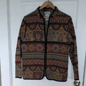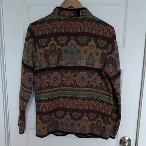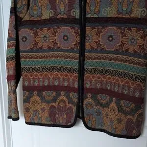 This stylish women's jacket features a vibrant multicolor pattern, perfect for adding a pop of color to any outfit. The intricate design offers a unique and fashionable look.
