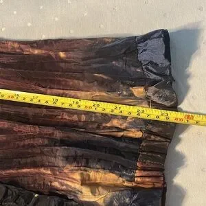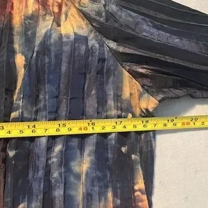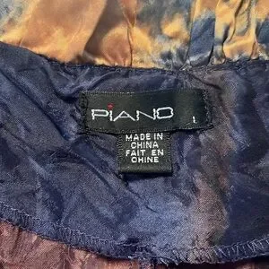 Stylish women's top featuring a blend of brown, blue, and beige hues. The ruffled design adds a touch of elegance.