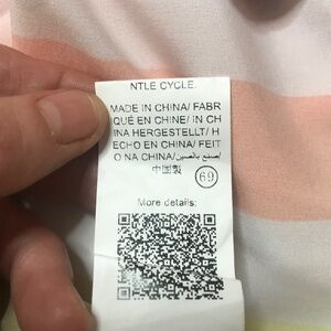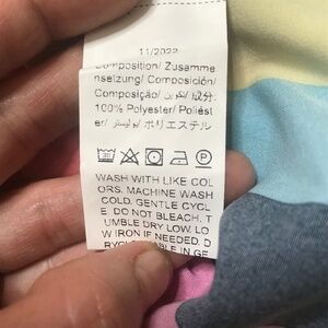 Features: Multicolor vertical stripes, tie-front hem, long sleeves with cuffs