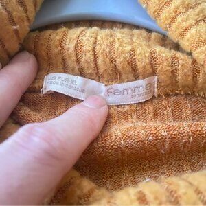 Embrace the cozy charm of the Femme Mustard Soft Turtleneck Sweater, a perfect addition to your wardrobe for those crisp days. This pullover is designed with a chic cowl neckline, offering both warmth and style. The vibrant yellow hue adds a pop of color that's easy to pair with your favorite jeans or skirt. Crafted for comfort and fashion, the sweater comes in a size XL, catering to a regular fit preferred by many. Its versatile design makes it suitable for various occasions, ensuring you look effortlessly chic whether you're out for a coffee or meeting up with friends.