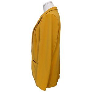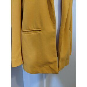 Womens Mustard Yellow Open Front Blazer Jacket Longline Office School Classic L