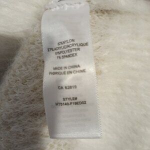Super-soft Ricki's snowflake pullover sweater. 62% nylon 27% acrylic 10% polyester 1% spandex. 26" from back neckline to hem.