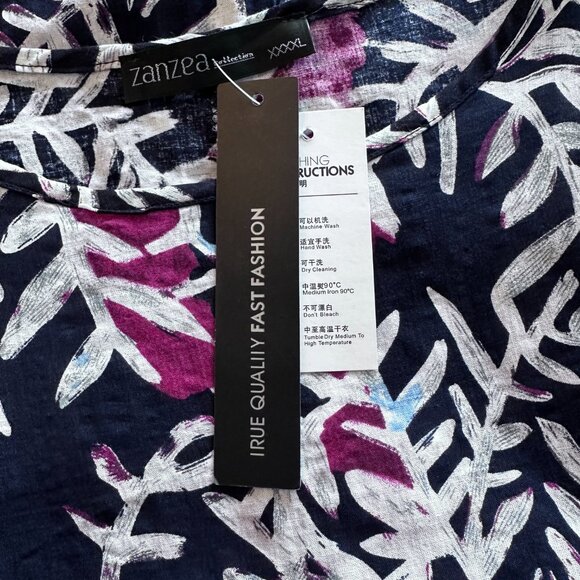 New With Tags Soft, Light weight, Full length maxi dress with long sleeves in Navy blue with white & pink leaf pattern