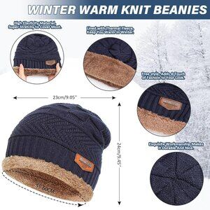 Women's Navy-Blue Winter Beanie Hat Set Warm Knit Hats Fleece Lined Neck Warmer