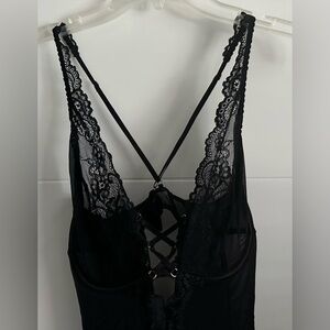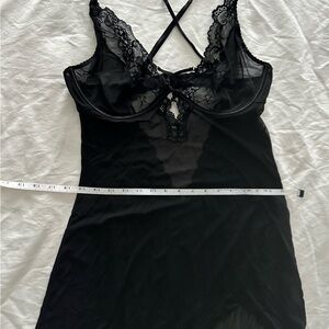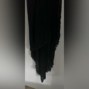 Beautiful design. Features hem that is shorter in the front & becomes gradually longer in the back. Garment was washed twice & worn once for a photo shoot & the pink tags had to be cut off for the event. I don’t have a record of the size. Gently used condition. Please refer to photos #9-11 for visual with measuring tape & reach out if additional sizing measurements are required. Best possible guess (please note that this info is not confirmed) Size: Large from La Vie En Rose. Please only purchase if you are accepting of these details/lack of confirmed info to prevent a discrepancy concern upon receipt of the item.