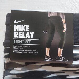Women's Nike Dri-Fit Camo Running Compression Tights Black White, Size M - NEW