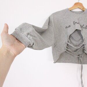 *Women's No Bra Club Letter Printed Long Sleeve Crop Top Long Sleeve
