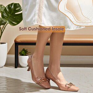 TIP-【If you have wide feet, we recommend ordering a half size up】Heel height is about 2.36", sexy heel pumps give you a few inches boost to your frame. The solid color and long square toe design are stylish and comfortable.