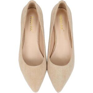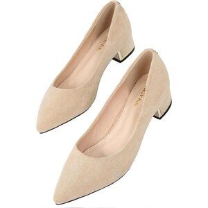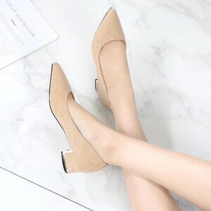 Women's Nude Suede Low Heels Stacked Block Heeled Causal Flats Pumps Shoes
