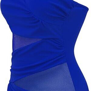 This swimwear features a one-shoulder design, with padding in the top and a see-through mesh style, a sexy and flattering while ensuring adequate coverage.