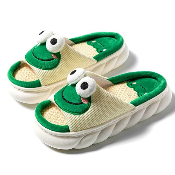 Women’s Open Toe Cute Cartoon Frog Soft Warm Indoor Non-Slip Foam Slippers 44-45