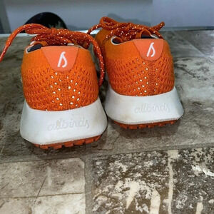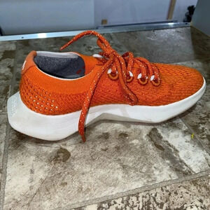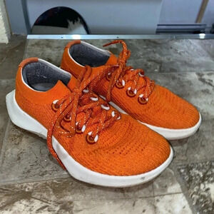 Women’s orange Allbirds Tree Dasher Lace up Running shoes. Size 6. Bottoms have some wear but they are still very clean and in good condition. Easy to clean and very comfortable.