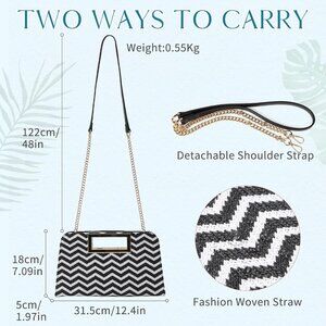EXQUISITE CUT-OUT HANDLE: This straw clutch purse has an elegant envelope shape. Its cut-out golden hardware handle, combined with the vintage straw exterior, makes it ideal for weddings and formal events. The woven straw adds a touch of summer vintage charm, perfectly enhancing your evening look.