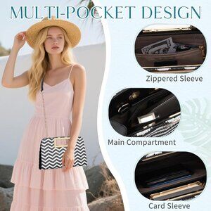 WELL ORGANIZED:The small handbag features a secure zipper closure, ensuring your essentials stay safe. Additionally, interior pockets provide easy organization for your cards, IDs, or makeup, making it practical for special occasions.