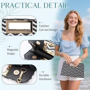 EXQUISITE CUT-OUT HANDLE: This straw clutch purse has an elegant envelope shape. Its cut-out golden hardware handle, combined with the vintage straw exterior, makes it ideal for weddings and formal events. The woven straw adds a touch of summer vintage charm, perfectly enhancing your evening look.