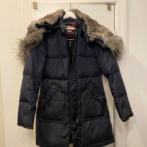 Women's Pajar Navy Blue Parka (w grey real fur trim)- XS