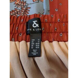 This beautiful Love & Legend midi skirt in size 1X features a gorgeous patchwork floral design with vibrant colors of orange and coral. The skirt has a flattering flare style with a comfortable elastic waist and a sheer lining, making it perfect for any occasion, whether it's a travel adventure, a party or a casual day out. The skirt is made of high-quality polyester material with layered accents and is suitable for all seasons. It has no personalization or handmade features but is perfect for those who love the bohemian, hippie, and festival themes. Get your hands on this stunning skirt now and elevate your wardrobe to a whole new level!