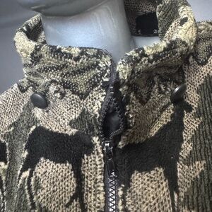 Stay warm and stylish with this patterned jacket. Featuring a unique design in green and cream, it's perfect for any casual outing.