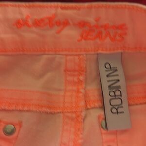 Stylish and comfortable peach jeans perfect for any casual outing. Add a pop of color to your wardrobe with these vibrant pants.