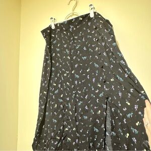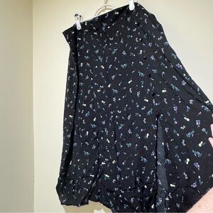 Chic asymmetrical skirt with floral accents. Stylish and versatile. Very lightweight for summer and very comfortable. Fits true to size. 100% viscose blend. No issues or flaws. Brand new condition. Has a small slit on the left side. Measurements are included in photos.