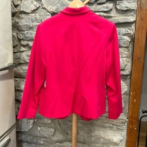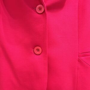 Elevate your style with this chic pink blazer. Perfect for any occasion, it adds a pop of color to your wardrobe. Ponte material. Black and white lining. Measurements in pics: pit to pit and length.