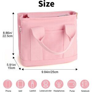 Women's Pink Canvas Tote Bag With Multi Pockets Mini Shoulder Bags With Zipper